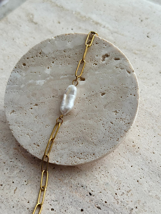 OFFSET PEARL CHAIN BRACELET - GOLD
