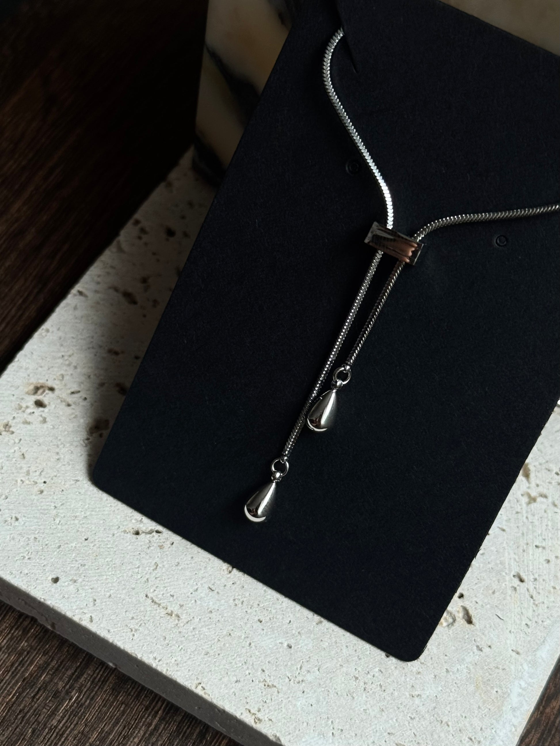 PETITE TEARDROP LARIAT NECKLACE - SILVER